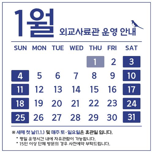 [안내] 2026년 1월 외교사료관 휴관일